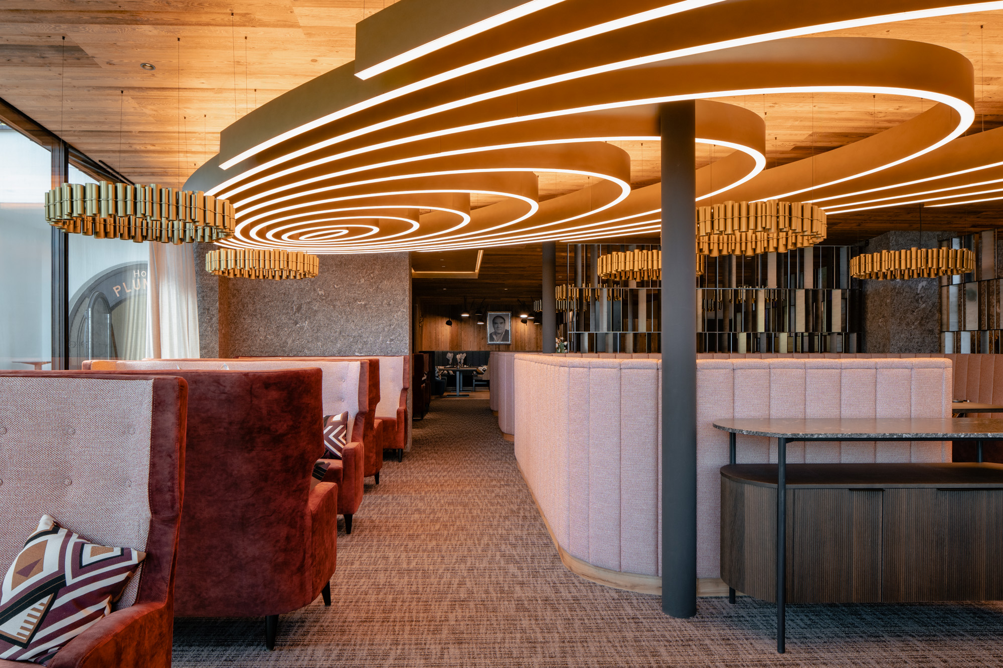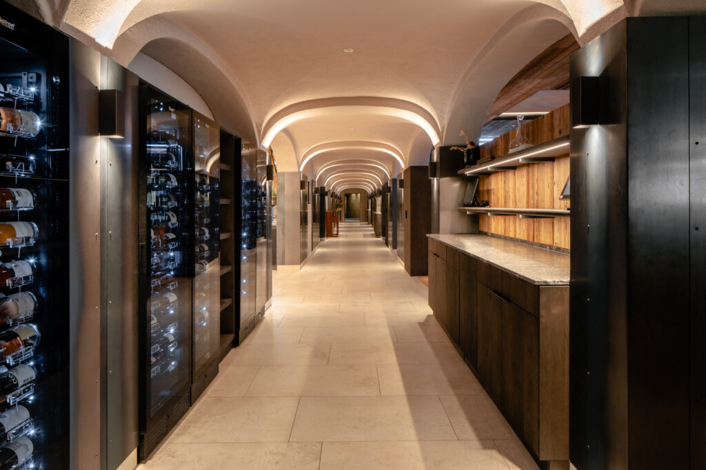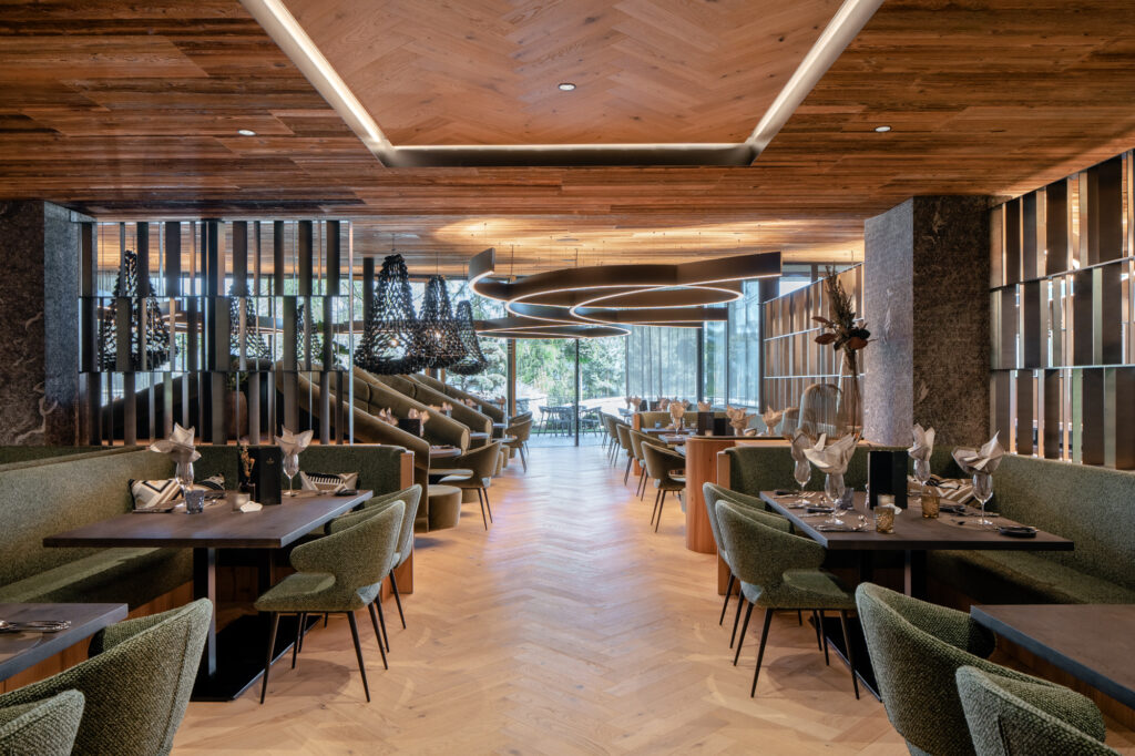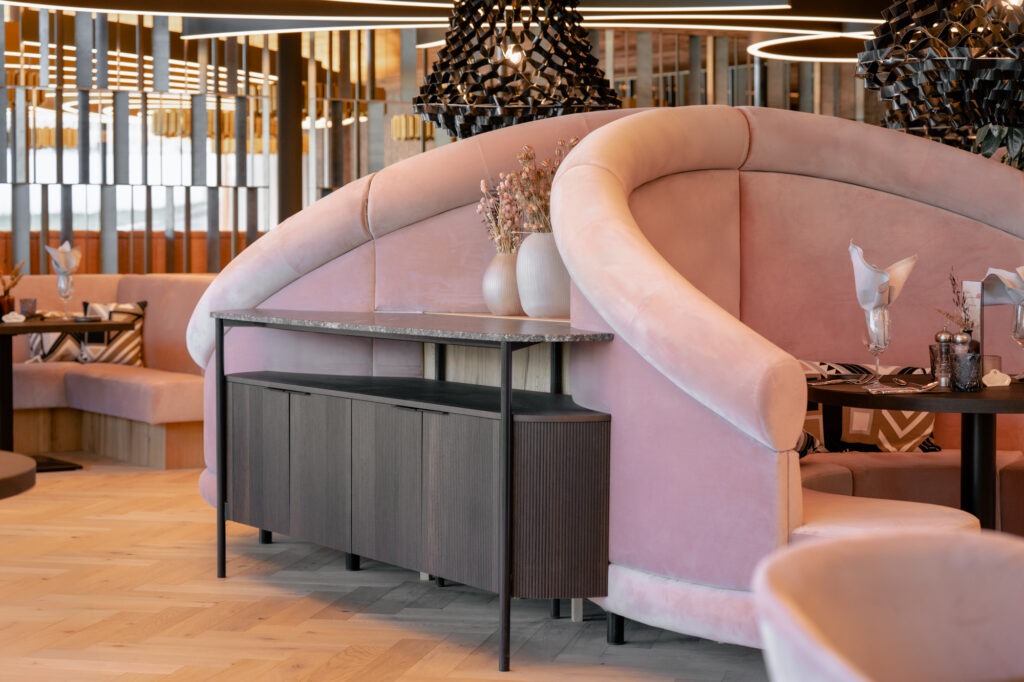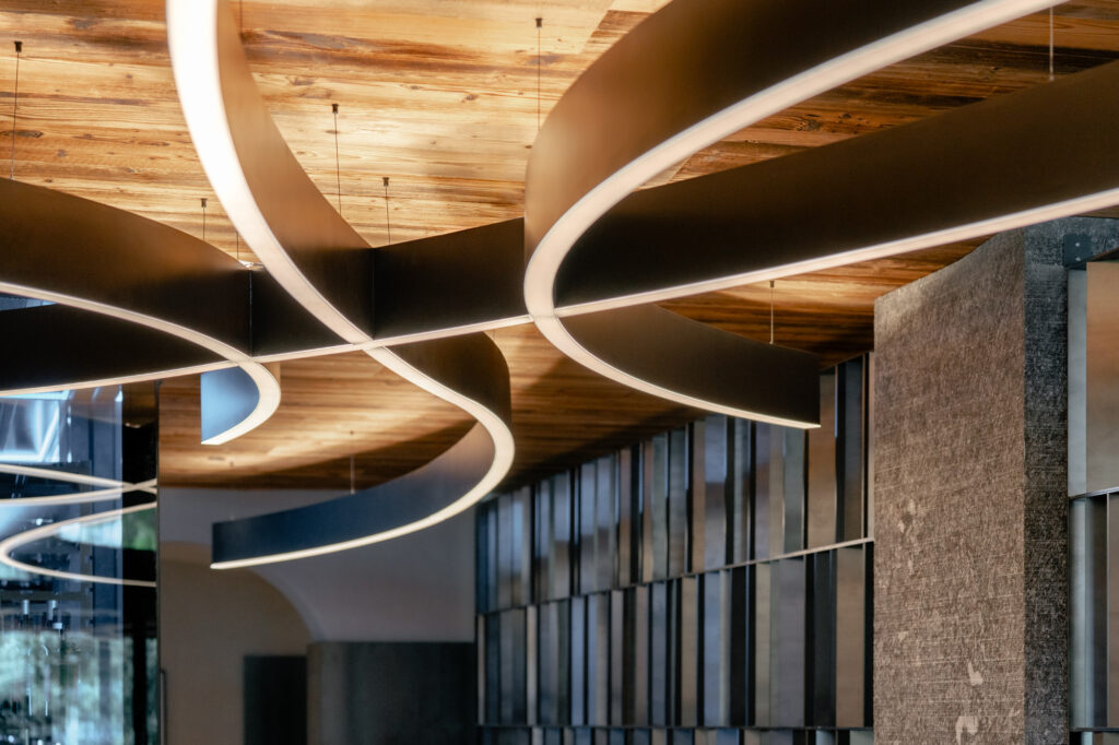 Für die Familie Volgger setzten wir eine Hoteleinrichtung um, die durch das Zusammenspiel von Holz, Stein, Metall, Stoff und Licht eine spürbare Atmosphäre entstehen lässt.