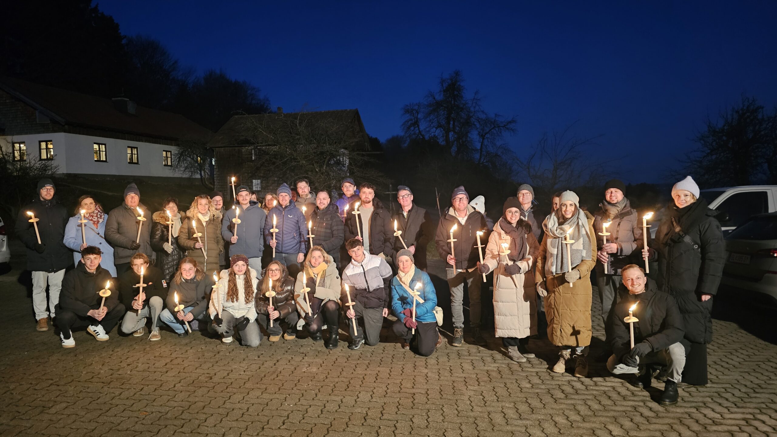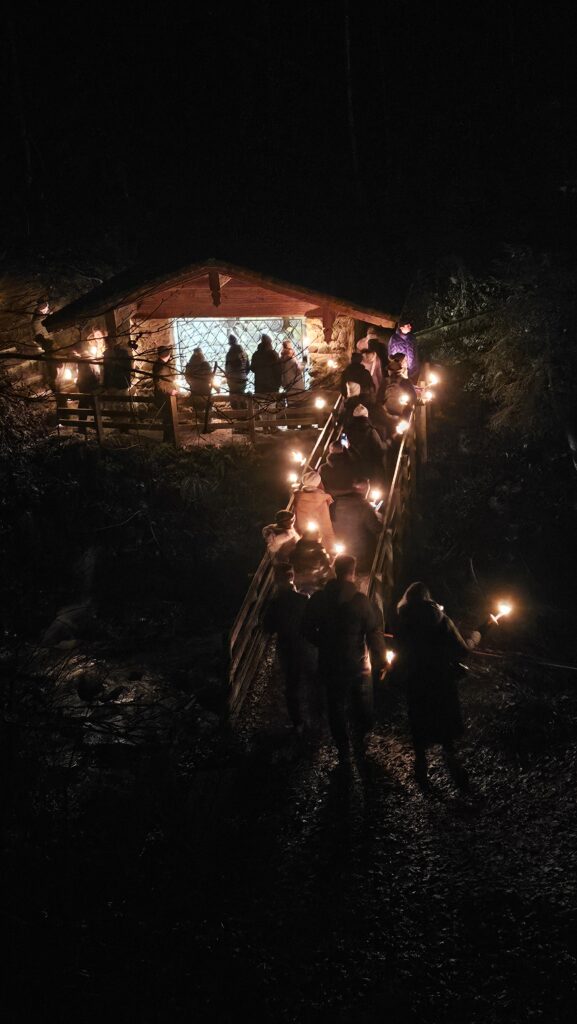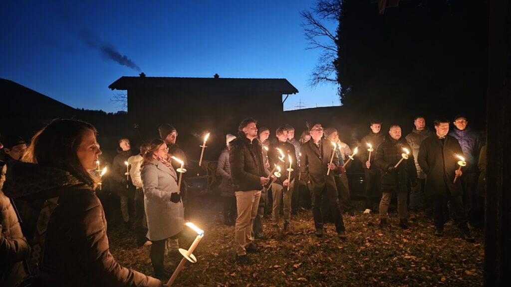 Am 19. Dezember 2025 fand unsere traditionelle Weihnachtsfeier statt – ein stimmungsvoller Abend ganz im Zeichen von Gemeinschaft und weihnachtlicher Atmosphäre. Den Auftakt bildete eine Fackelwanderung durch den Teufelsgraben, begleitet von Bläserklängen und einer eindrucksvollen Führung durch den ortskundigen Hansi Greisberger, der mit seiner Begeisterung und seinem Wissen für besondere Momente sorgte. Eine süße Stärkung mit selbstgemachten Bauernkrapfen durfte dabei natürlich nicht fehlen.
